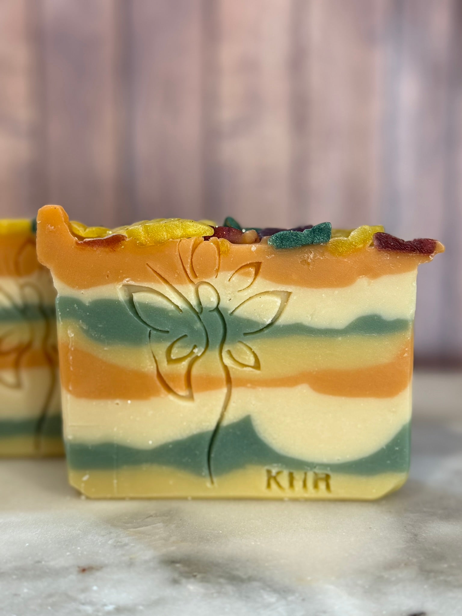 This soap is AMAZING!!! It smells amazing, it lathers amazing, and feels amazing and it cleans amazingly. I love that the soap is made with natural ingredients, it's gentle on my skin and it does not contain any harsh chemicals that leave your skin feeling dry and irritated. It leaves my skin feeling clean, soft, hydrated and smelling amazing. I highly recommend this soap to anyone looking for a natural and effective soap. The only down side is it's almost too pretty to use. The soap looks and smells amazing just sitting in your bathroom. THANK YOU EMBERLYN FOR AN AMAZING SOAP!