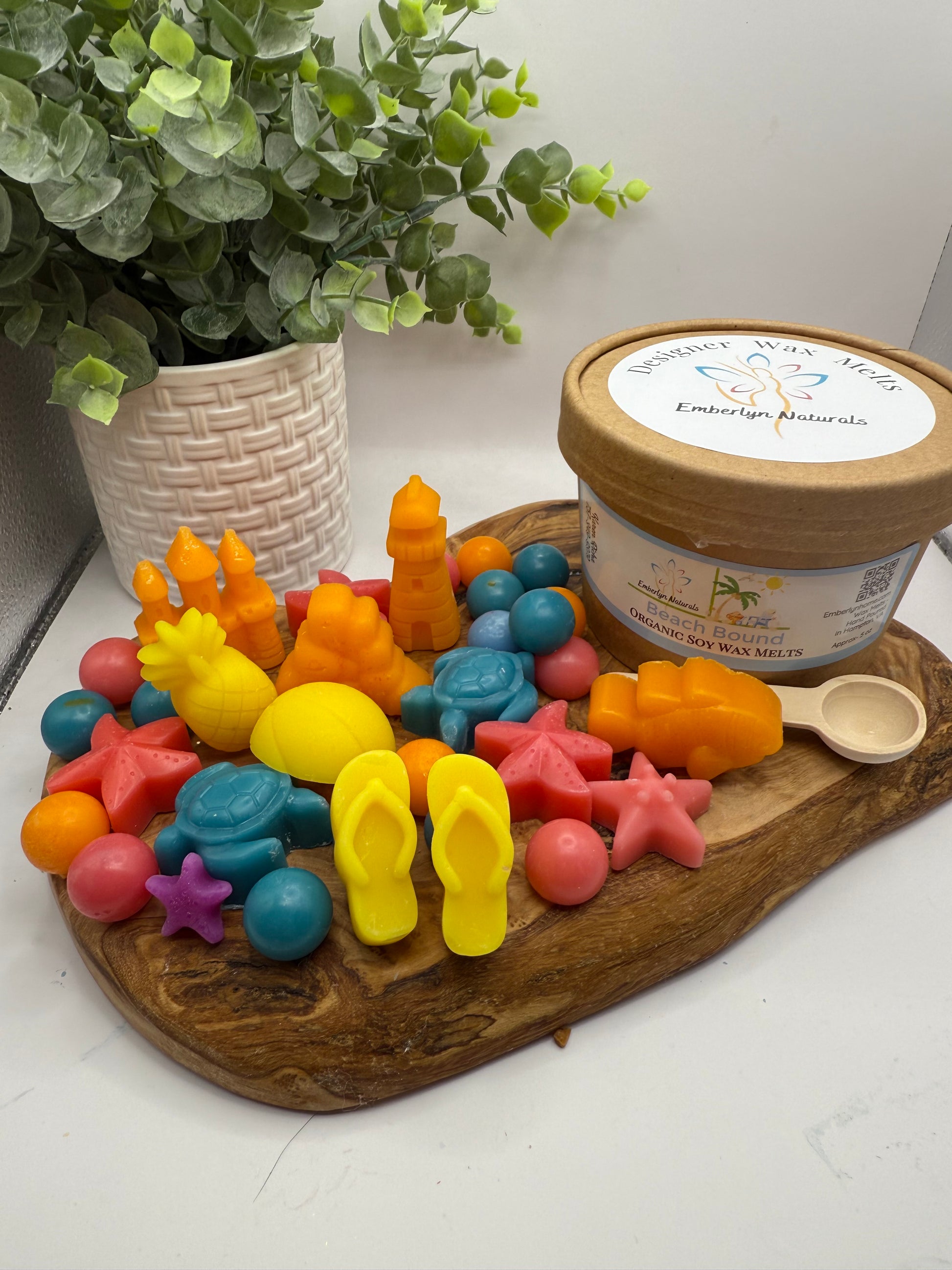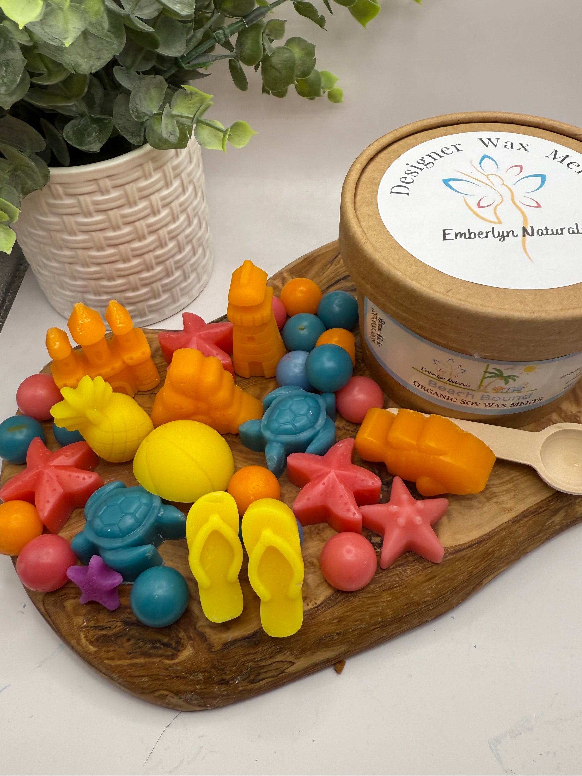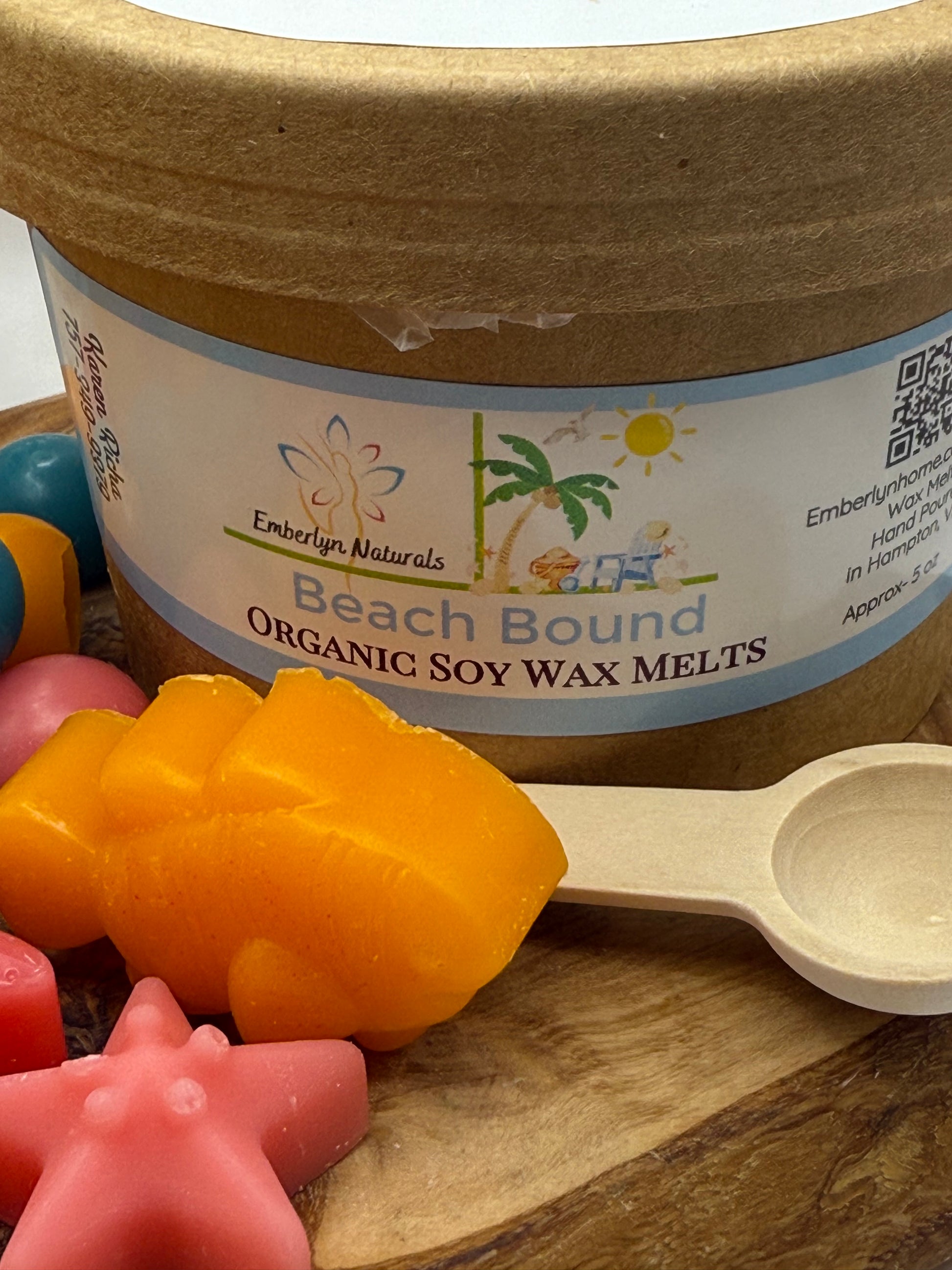 The warm sand base notes ground this aromatic journey, making it ideal for relaxing at home. Crafted from 100% organic soy wax, these melts offer a clean burn and invite the beauty of the beach into your space. Let the Beach Bound Wax Melts transport you to your favorite seaside memories!