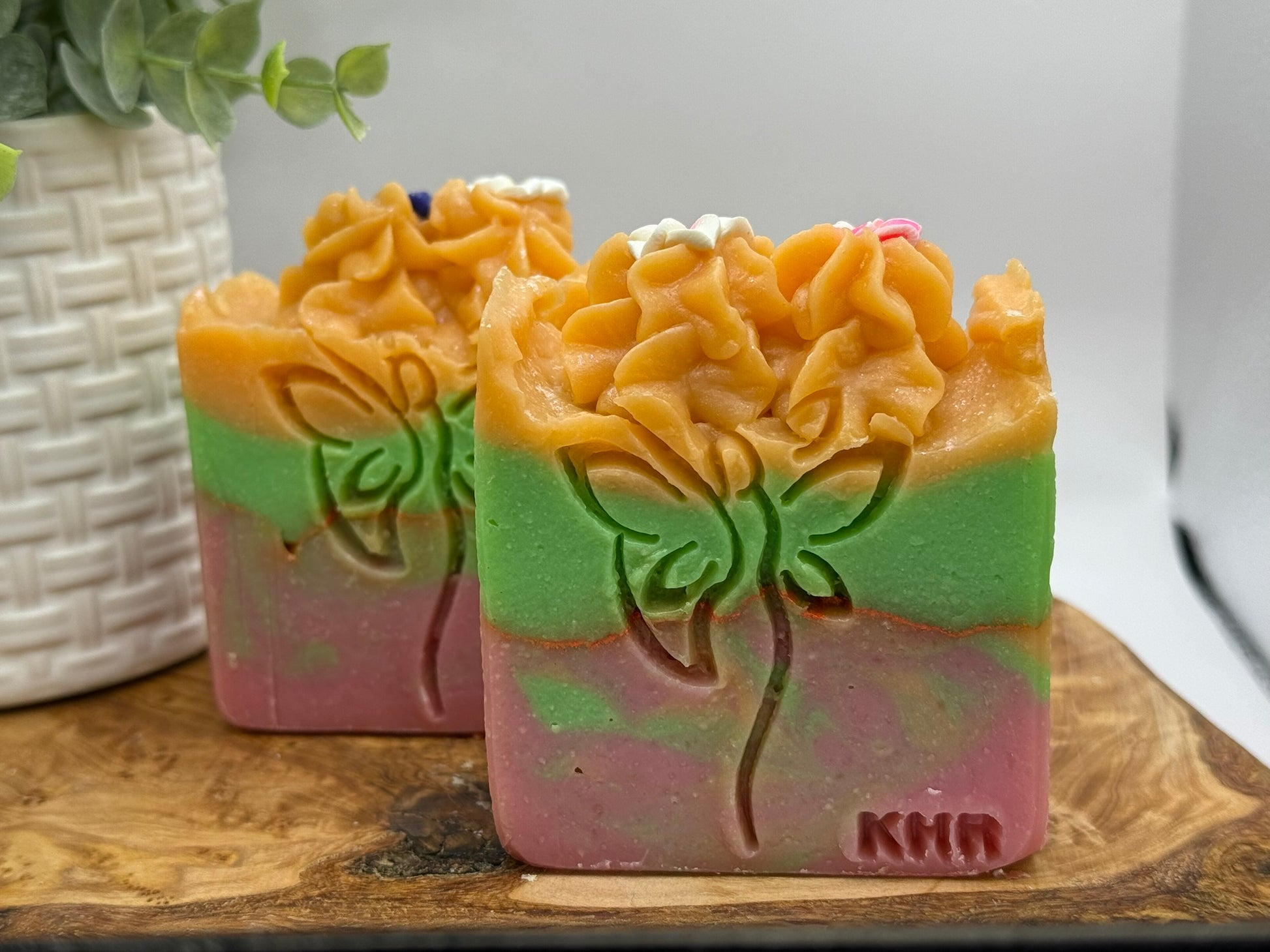 Each bar bursts with a symphony of bright citrus notes, as zesty orange and lemon that dance with the sweetness of crisp apples and red berries. A heart of delicate floral bouquets—featuring enchanting wood rose, muguet, and jasmine—adds depth and elegance.
