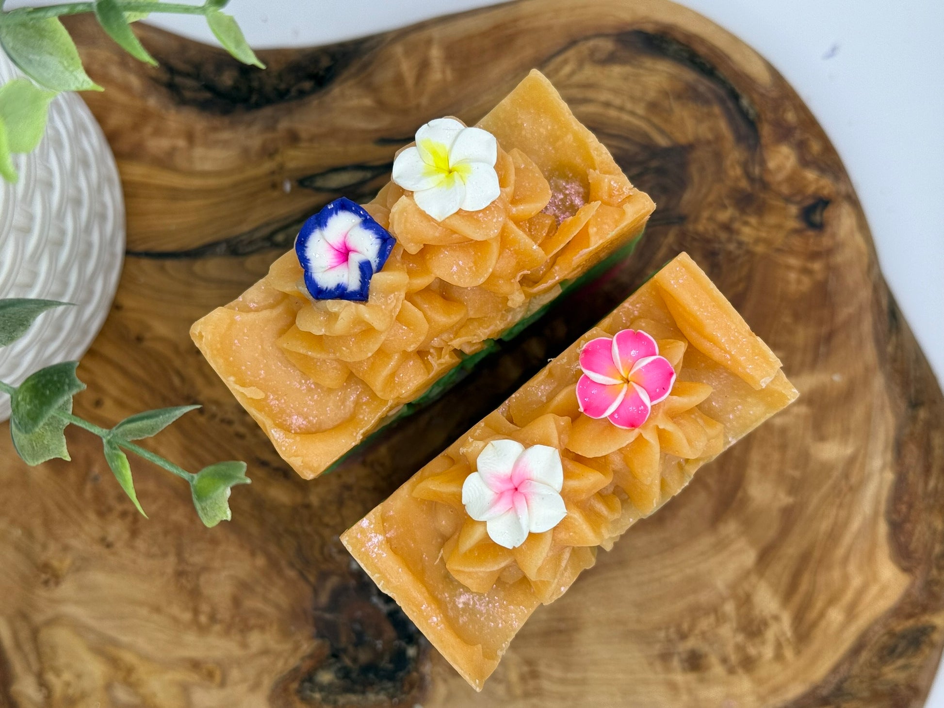 Enhanced by the warmth of sweet amber, woods, and white musk, this soap offers a luxurious experience that lingers. Elevate your daily ritual with this exquisite blend of scent and artistry.