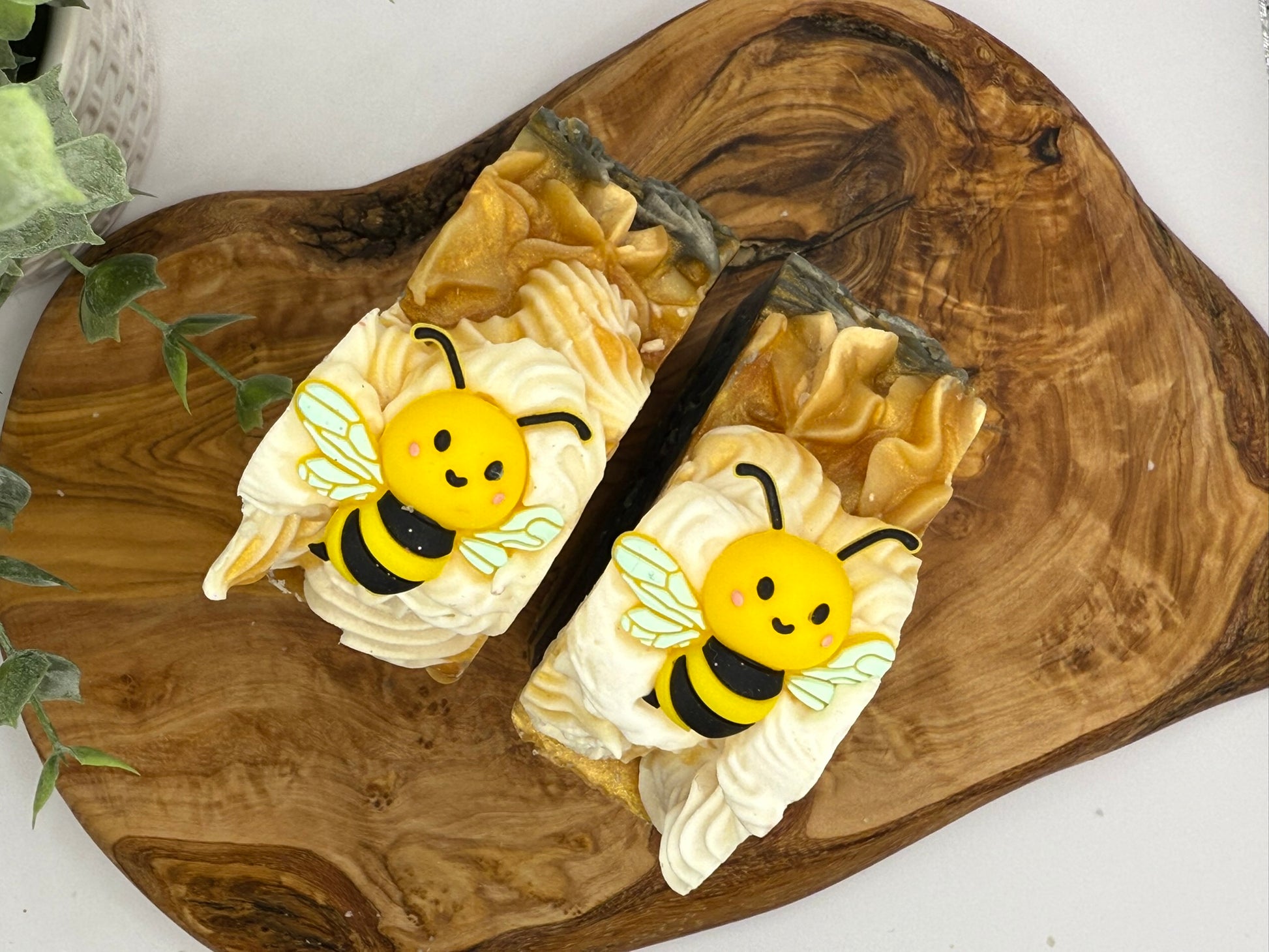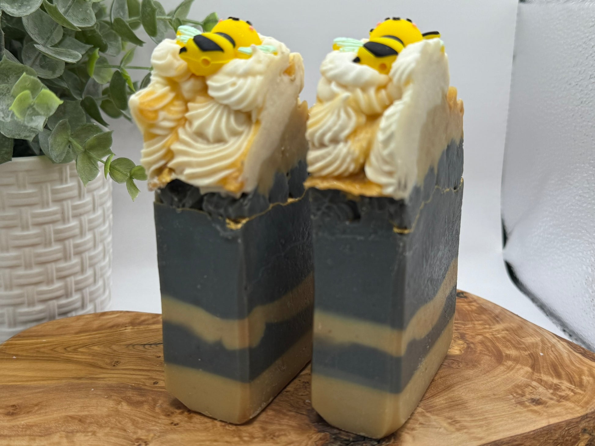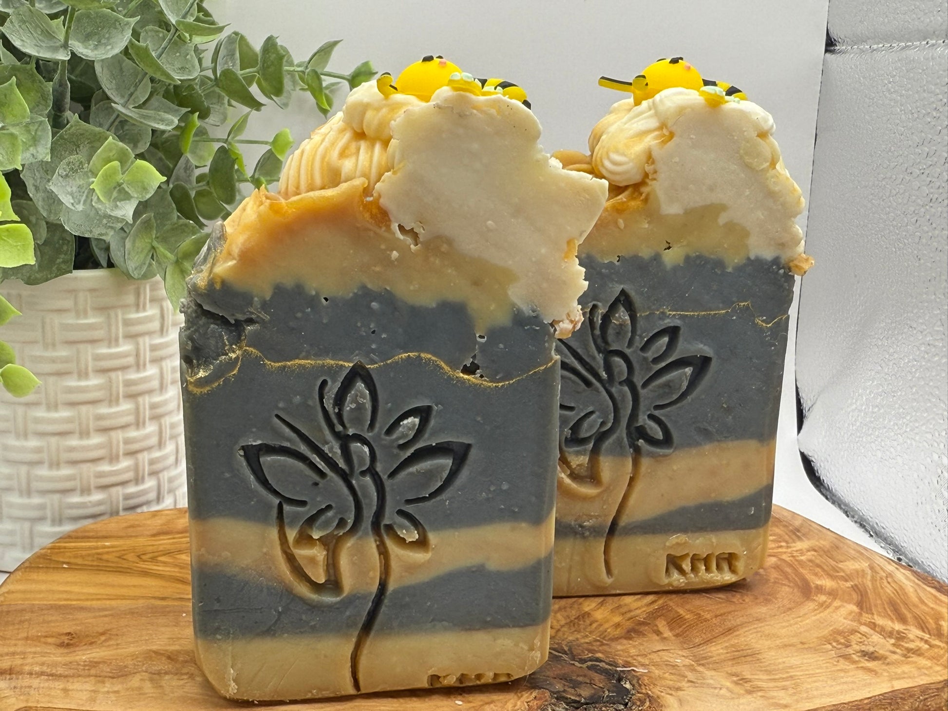 Experience the charming allure of our Oatmeal Milk and Honey Bar Soap, featuring a delightful decorative bee on top.